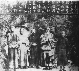 先师出家后,曾生大病三次。第一次在上虞法界寺,病未痊,被甬僧安心头陀请去西安宣扬佛法,无异绑架。师被迫,允舍身,有遗嘱一纸付余。余以其不胜跋涉,在甬轮上设法救回,自轮船三楼负师下,两人抱头大哭。