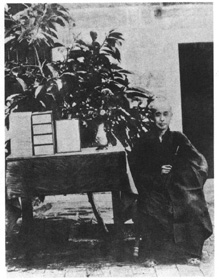 与经书一起合影,这就弘一大师而言应该算是再合适不过的了。
