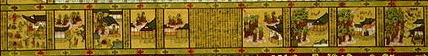 )的寺庙,恳请证空上人为其解说寺中所藏阿弥陀佛极乐世界曼陀罗。证空上人虽答应了见阿上人的请求,但由于事务繁忙一直未能成行。翌年见阿上人再次前来恳求,并带来"当麻曼陀罗"缘起文。证空上人读完缘起文后大为感动,遂带弟子二十五人拜访当麻寺。当证空上人瞻拜了当麻寺净土曼陀罗之后,深为其绝妙的手笔所震撼,感动得热泪盈眶。后来由于证空上人极力弘扬的缘故,此图在日本佛教界引起了强烈反应。另外日本净土宗大本山增上寺的开山祖师酉誉圣聪(1366-1440)上人曾撰写《当麻曼陀罗疏》四十八卷[18],对于该曼陀罗的研究产生了相当大的影响。"当麻曼陀罗"下端十个小图的中央部分用四百一十三个汉字(二十一行)记叙了此图的缘起,原文如下: