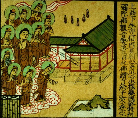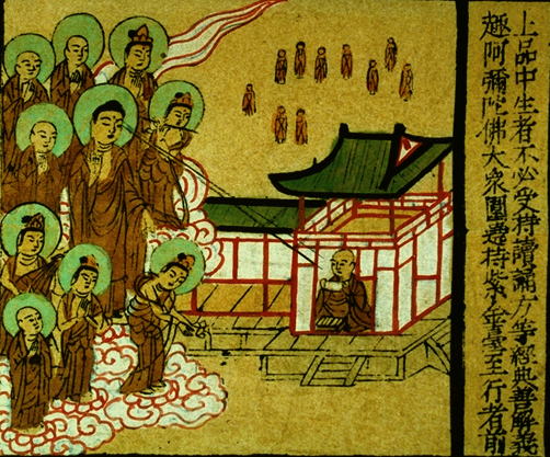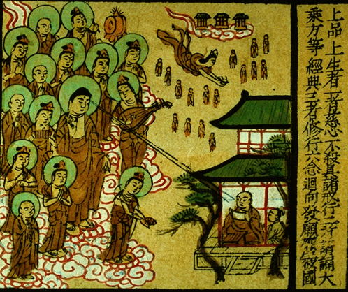 Amitayus appears before him, surrounded by