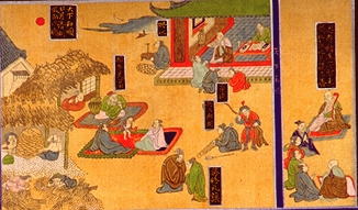 第七部分: 描绘命终之时,无论贫富寿夭,财物眷属不得随身、均须捐弃的情景。经云:或坐摧碎,身亡命终,弃捐之去,莫谁随者。尊贵豪富,亦有斯患。忧惧万端,勤苦若此,结众寒热,与痛共俱。又云:(贫穷下劣)忧念相随,勤苦若此,亦结众寒热,与痛共俱,或时坐之,终身夭命。 |